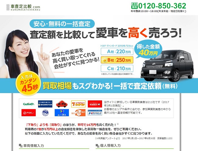 車を売る決断したらすぐに情報を収集を怠らずに行えば、10万円単位で売り時を見極めて売れば、あっという間にうれますよ。そこで、売り出すことを選択したら、一括査定サービスをして買取相場を情報をメモしておくことが肝心になるのです。最近では、複数の中古車買取店に、ネットを経由して簡単に査定依頼ができるので、中古車査定サイトが流行ですが、本当に多様なサイトがありますので選ぶのが大変ですね。営業さんに口八丁で言い含まれて、下取り車を安価で買い取られて都合よく処理されてしまいます。車の買い換えをやったことがある方に知識として会得しておいて肝に命じてもらいたいのが、所有しているくるまの買取相場です。購入は新車だけならば、ディーラーの営業マンと顔見知りになっておくことは大事です。それゆえ、中古車を購入しないなら信念であれば、下取りするのは、主なルートでしょう。ある特定の業者への見積だけしか確認しないと、一番安い価格のところに買い取ってもらうことを決めてしまうと打撃を蒙ります。このようにならないように、中古車査定をするサイトでの一括査定にチャレンジしてください。今日このごろ、専門のホームページで中古車査定サービスにて、簡単に査定金額を一括比較することができます。所有しているくるまが、如何ほどで買取りとなるのか、目安が確認できるのでありがたいですね。あなたのクルマを車査定するようなサービスは面白いサイトがありますが、売り方にも色々で異なりその事を理解して活用するのが、車査定を成功させる場合の大事です。簡単にメールのやり取りで車査定をやっているWEBサイトとしては、CMで知名度が高く気軽に大勢の方が使っている中古車査定サイトを無難です。車買取専門ショップは、買い取った車の販売先を多く確保済みで、高値売買できる高額買取の販売店を選択して持ち込みますので、高額で売却することができる通常より高額なのです。所定の項目に対して簡単に書き込みするだけ簡単に一括かつゼロ円で5~10社の車買取業者に車の査定額を提出してもらうことも可能ですのでおすすめです。インターネット経由ですから、一年中対応してくれます。車買取専業店に行って、ベテラン営業のトークやスタッフの接客ぶりを見て、あれよあれよと言う間に売買契約をする人の話が周囲からも聞こえて聞きますが、車買取を行う場面において、取り敢えず平常心で落ち着かせることです。高い金額で買い取ってもらいたいとすれば、車買取の専門ショップ同士を競争させることが必須です。査定者が違うため、査定の金額もより、高価提示されます。車買取店に売り渡された中古車の9割以上は、オートオークションで出品されて中古車販売店などに買い取られるので、オートオークションの平均売却価格より、10~20万円前後安いというのが一般的だと思われます。提示された査定額が基準価格からズレていないかはっきりしないので、ネットを活用した一括査定を実施する前に、あなたの所有車の買取相場をメモしておくようにしてください。あなたのクルマを長年、丁寧に大事にしてきた愛車であるにもかかわらず、適当な安い値段で売られたら、承諾できません。